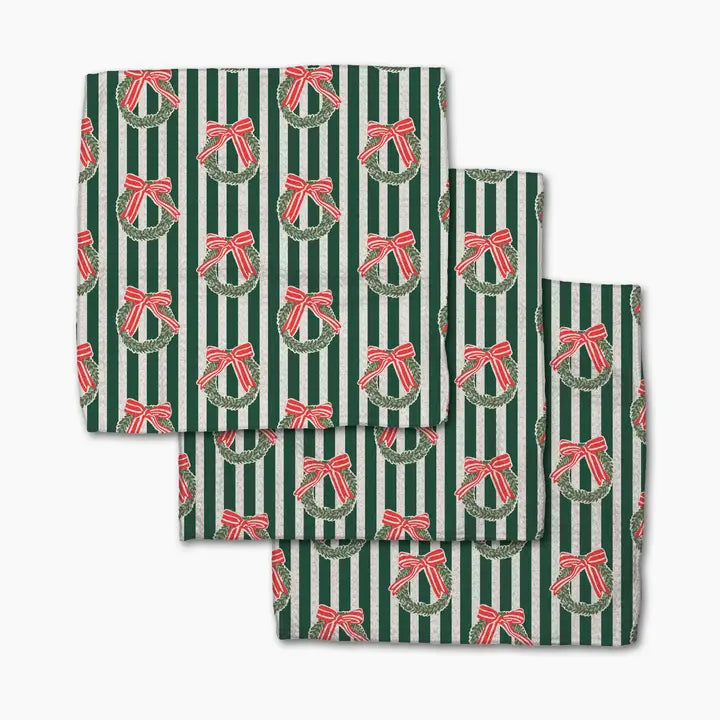 Geometry dishcloths provide super cleaning and next-level absorbency when drying dishes and surfaces! Dishcloth Set - 3 pack | 10" x 10" | Made from recycled polyester | Weight: 320 g | Single-sided print | Hang loop | Waffle weave construction | Quick-drying