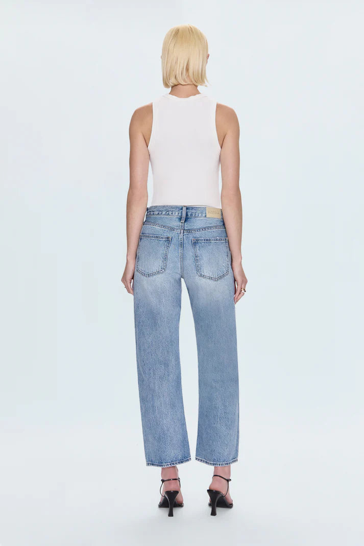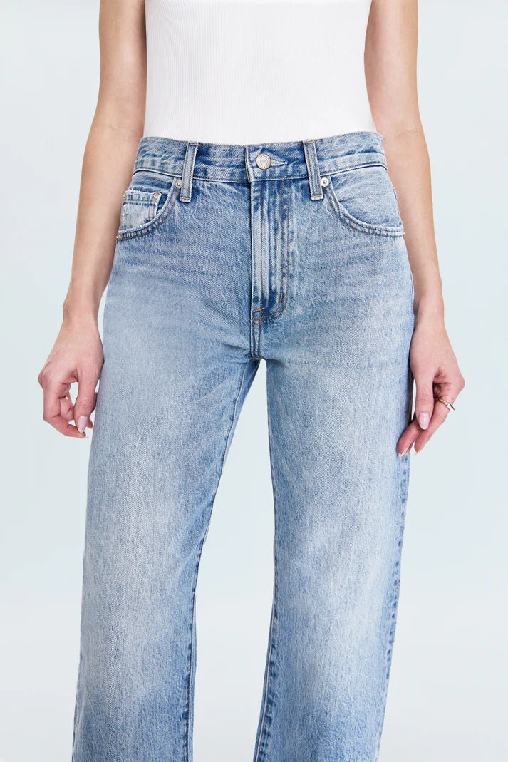 The best-selling jean that understands proportions. Lexi Petite features our signature bowed straight leg with expertly placed knee positioning and shortened inseam and rise—specially designed to flatter frames 5'4" and under. Finished with a 26" inseam, the silhouette creates that coveted arched shape before tapering to a cropped ankle with a clean hem. Bowie brings effortless cool with its light wash and lived-in fading that feels authentically worn.