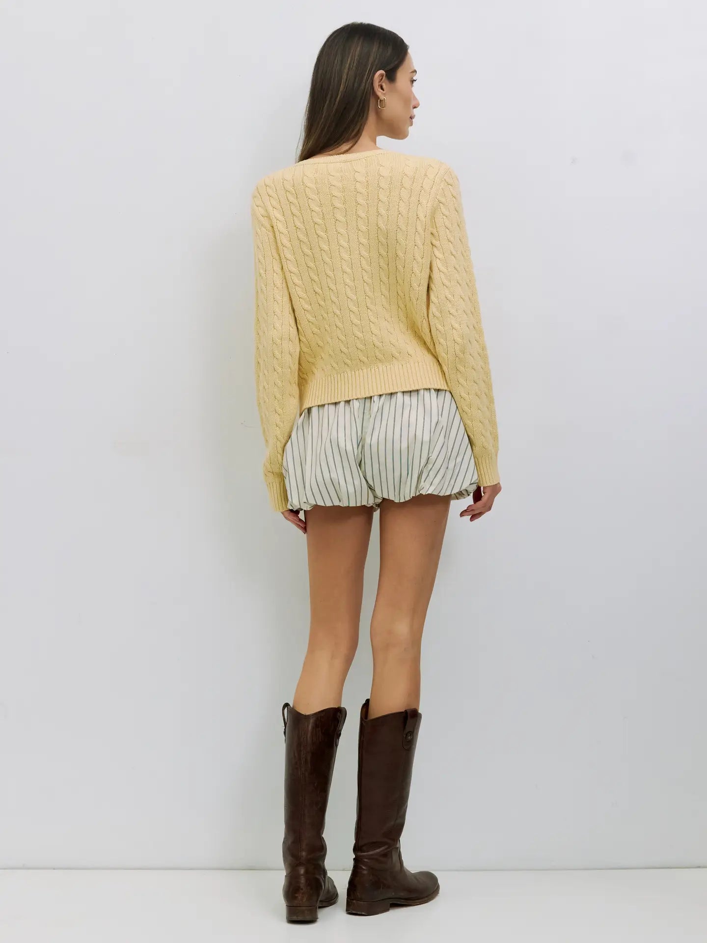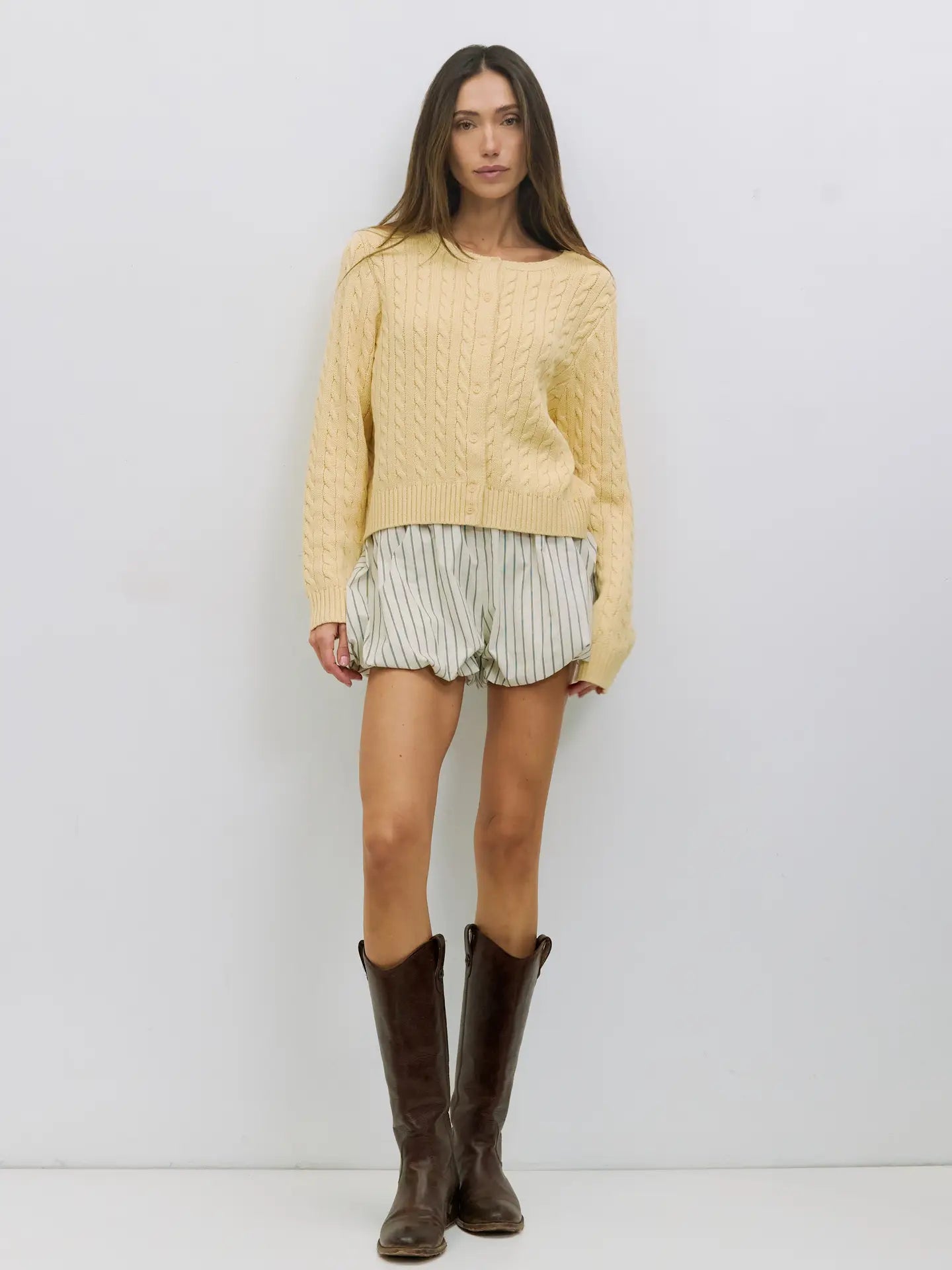 The Dale Cardigan is crafted from midweight 100% cotton with a relaxed fit, featuring a crewneck, long sleeves, and a full front button closure.